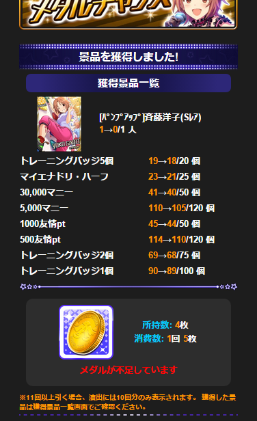 #imas_cg あ、メダルチャンスで洋子引いちゃったよ