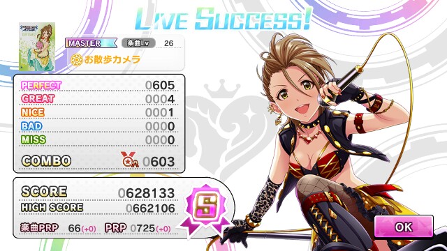 - RT @T_Shindoh: デレステ、藍子のお散歩カメラのMAS。楽曲Lv26。だいたいレベル通りか26の中では難易度低い方かもしれない。 しかしフルコンできない。 この曲凄く油断する。これがゆるふわタイムか。
