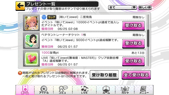 #デレステ Cute GrooveのMASTERで、S(mile)ING!→できたて→ススメ☆オトメCuだったのだが、最初の2曲がくだらないミスでフルコン取れなかった…(最後だけ取れた)