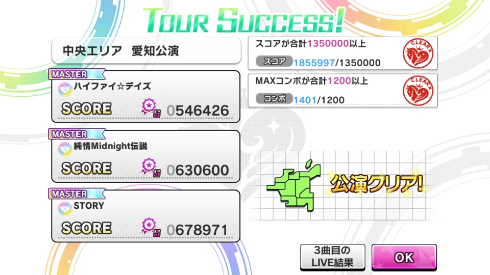 - #デレステ Ex埼玉の前哨戦としてプレーした愛知の結果。全くもって200万点に足りてない…(愛知の目標は達成したけど) ハイファイ☆デイズの中盤で無反応MISSが出たのが命取りだった [twipple]