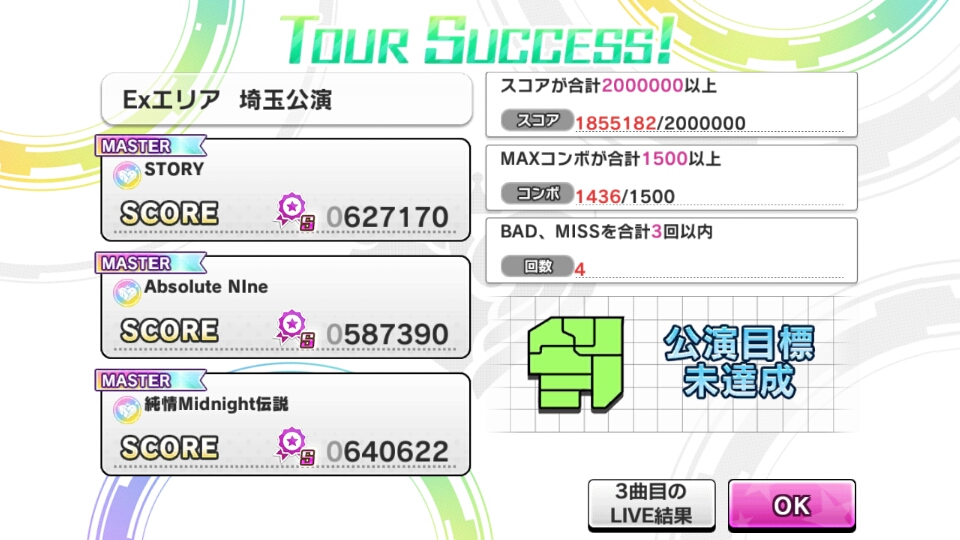 - #デレステ Ex埼玉、目標達成のために判定抜けMISSも許されないのつらい…(コンボ数で足りてもスコアが足りない) [twipple]