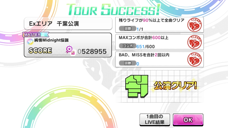 - #デレステ よっしゃ、Exの千葉を一発で取れた(純情Midnight伝説MASTERをフルコン) [twipple]