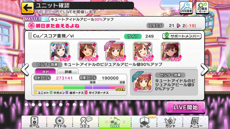 - デレステゲストガシャ。目当ての能力のゲストが出るまで頑張る。 私、いま「Cu、Vi90%アップ」を目当てに挑戦したところ、たぶん800連(40回)くらい出なかった…出るまで本当長かった #デレステ [twipple]