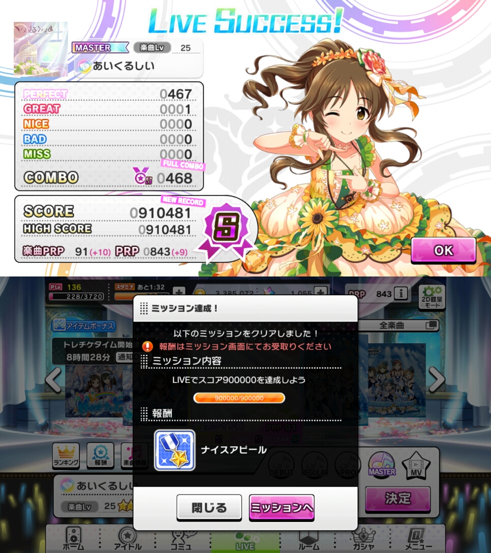 #デレステ あいくるしいMASTERは4回目の挑戦でフルコンボでした