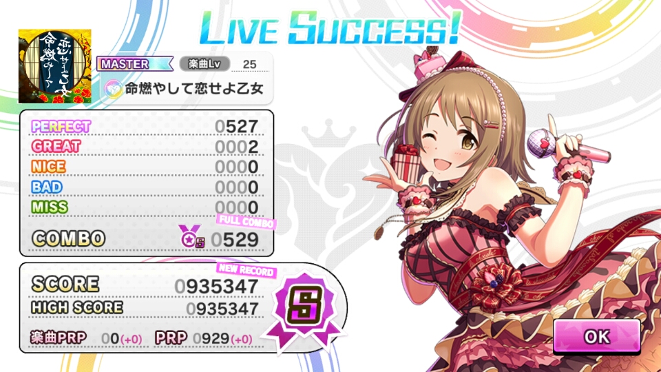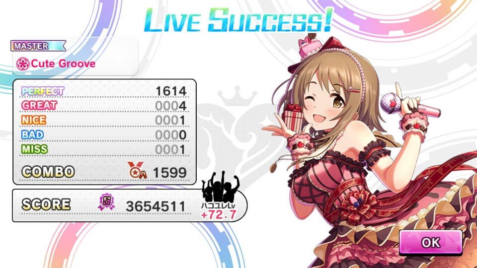 ゆきんこさん、たまに取りこぼしこそあるけど大崩れはないな。自分の端末ならフルコン取れてそう > 2nd SIDE MASTER