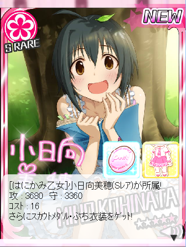 - #imas_cg [はにかみ乙女]小日向美穂、モバゲー側では初めてお迎えした(なおSR10%チケ) [twipple]