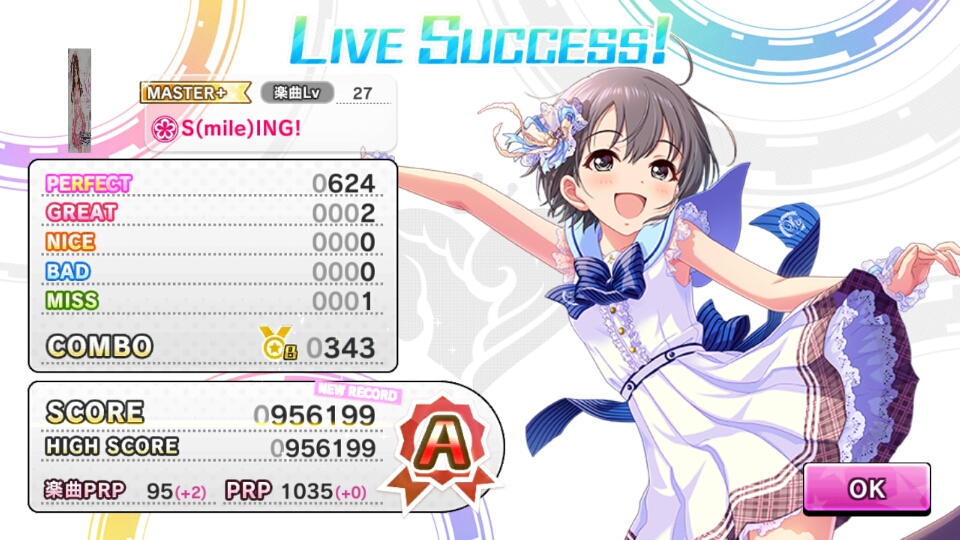 2017-05-06 09:17:57 +0900 #デレステ Nothing but You MASTERフルコン。サビ前の片手タップ片手フリック地帯がきつかったのだが、やってるうちに「考えるな、感じろ」ってなってきて対応できた。ゴキゲンParty Night MASTERのラスサビができるようになったときと同じうれしさがある