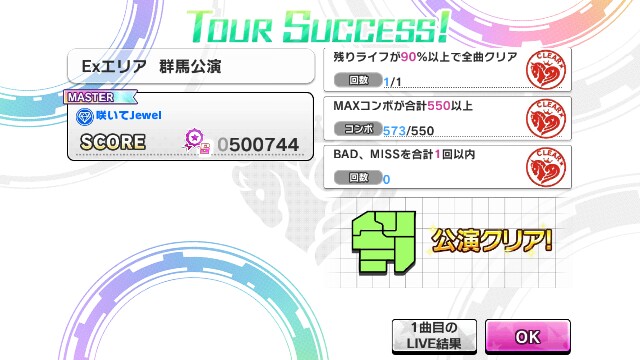 - #デレステ Ex群馬を3回目の挑戦で突破。1回目は恋色エナジーで失敗、2回目はNaked Romanceで失敗。3回目の咲いてJewelをフルコンで達成。 [twipple]