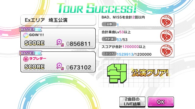 - #デレステ Ex埼玉、一発で突破できた…!かなり久しぶりだったにもかかわらず、GOIN'!!! MASTERがフルコンボ取れた [twipple]